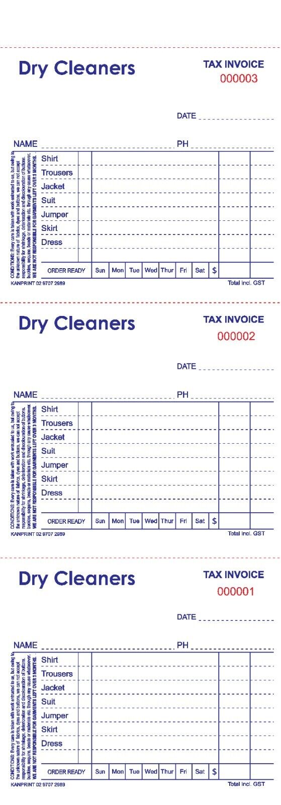 Dry Cleaner Docket Books. 3 to view NCR Paper Triplicate