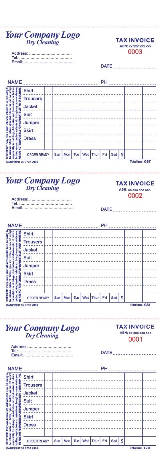 Dry Cleaner Docket Books