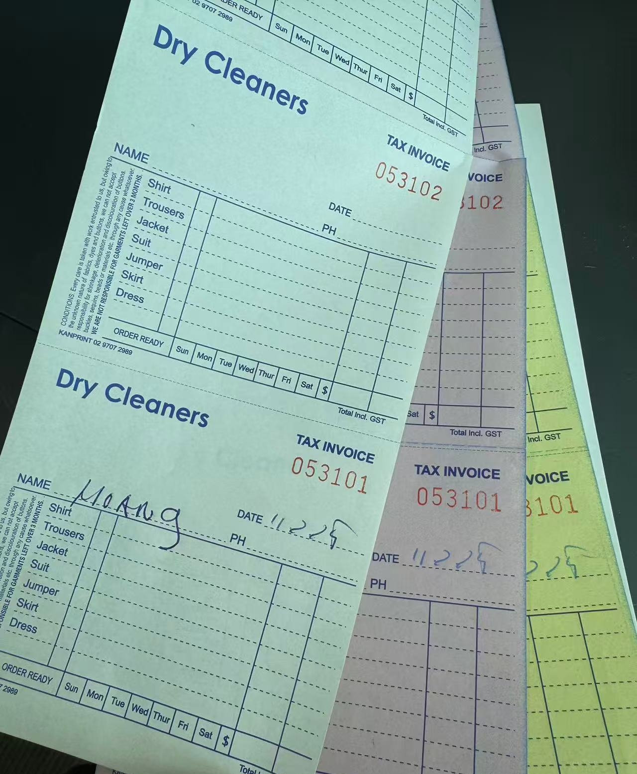 Dry Cleaner Docket Books. 3 to view NCR Paper Triplicate