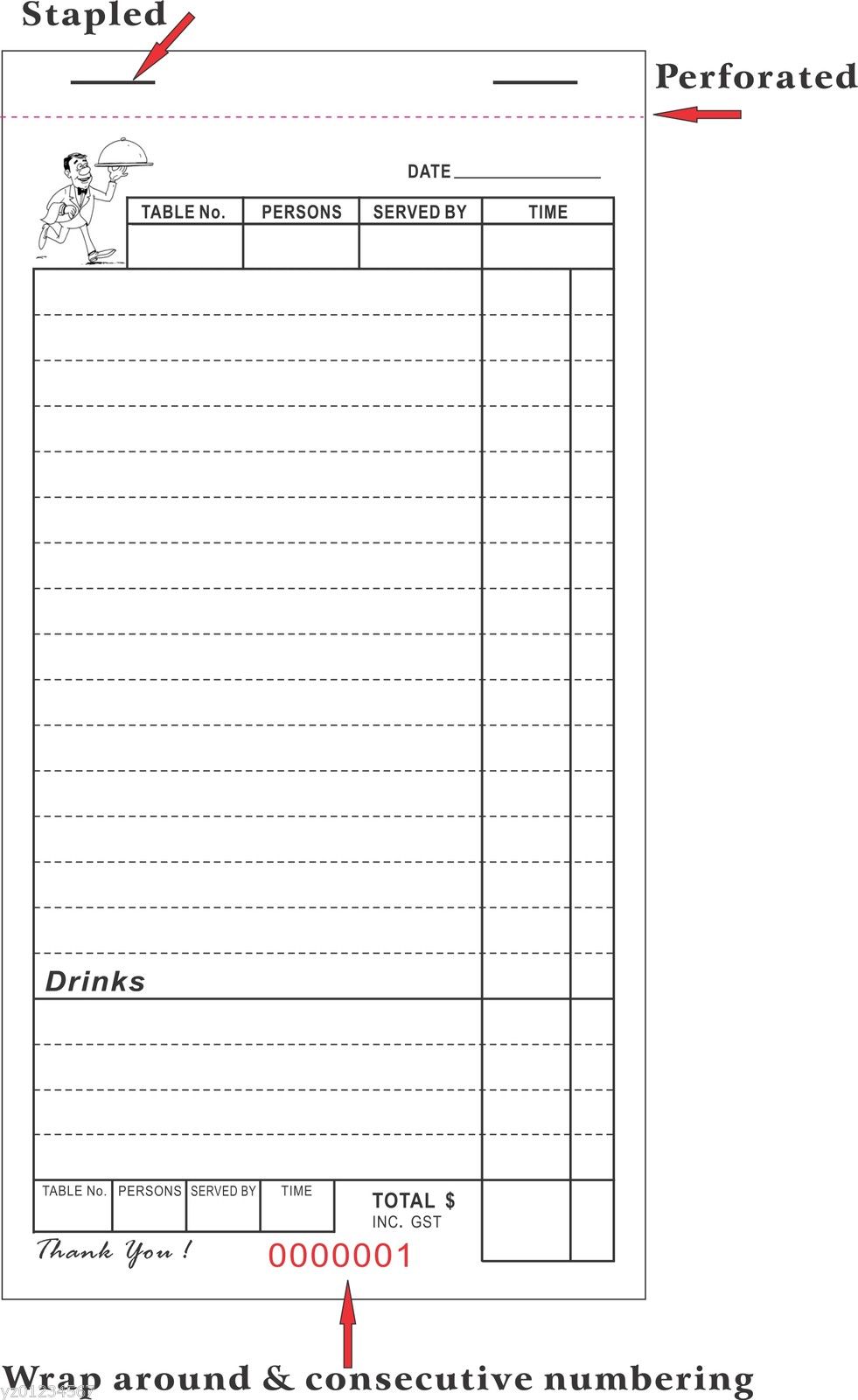 Printed 1 colour on quality NCR paper stock.
